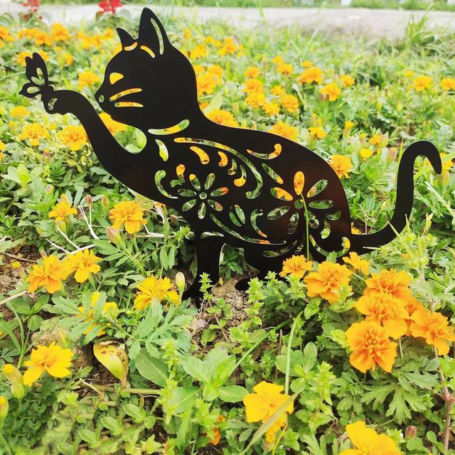 ガーデニングオブジェ ガーデニングプレート 庭 園芸 ガーデンピック アイアンプレート 猫