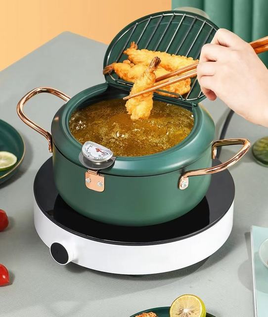 天ぷら鍋 温度計付 揚げ物 揚げ鍋蓋付 両手 天ぷら鍋 断熱性能に優れて 油切りラック付天ぷら油 IH