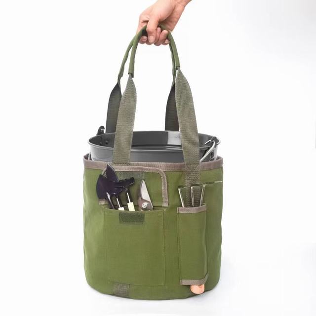 ガーデンツール収納バッグ 工具袋帆布 菜園万能収穫バッグ 収納袋 持ち運び 工具入れ 大電工バケツ 丸型