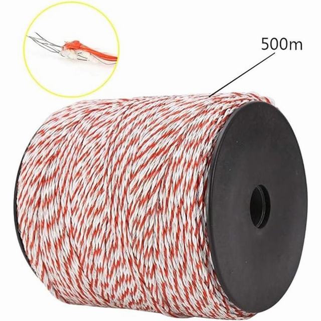 ステンレス鋼導電性ロープ, 錆びにくく、導電性に優れています。電気柵ラインは軽量で、取り付け、修理、スプライス、巻き戻しが簡単で、再利用できます。 赤と白の色は家畜によく見えるため、家畜をワイヤーから遠ざけ、偶発的な接触を減らします。 その長さは約500メートルで、家畜の柵を巻き取るほどの長さだ。農家にとって、動物がいるべき場所に飼われていることが保証されるのは良いことです。 家畜用電気柵に適した多芯導線を内蔵しています。電気柵ロープは、馬、牛、羊、犬、その他の動物に適した、大規模な農場や牧場で広く使用できます。