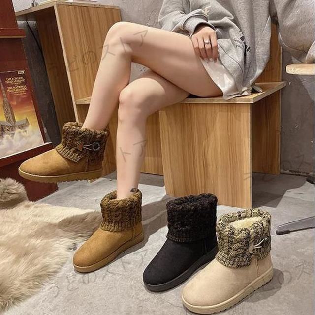 レディース ムートンブーツ レディースブーツ スエード ショートブーツ ニット ベイリーボタン 冬靴 シューズ 裏起毛 防寒 濃密毛
