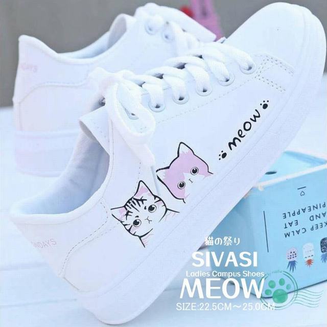 スニーカー レディース デニム インヒール キャンパス シューズ キャンパスシューズ 猫柄 ハイヒール ハイカット おしゃれ 可愛い 美脚 学生 白 ホワイト