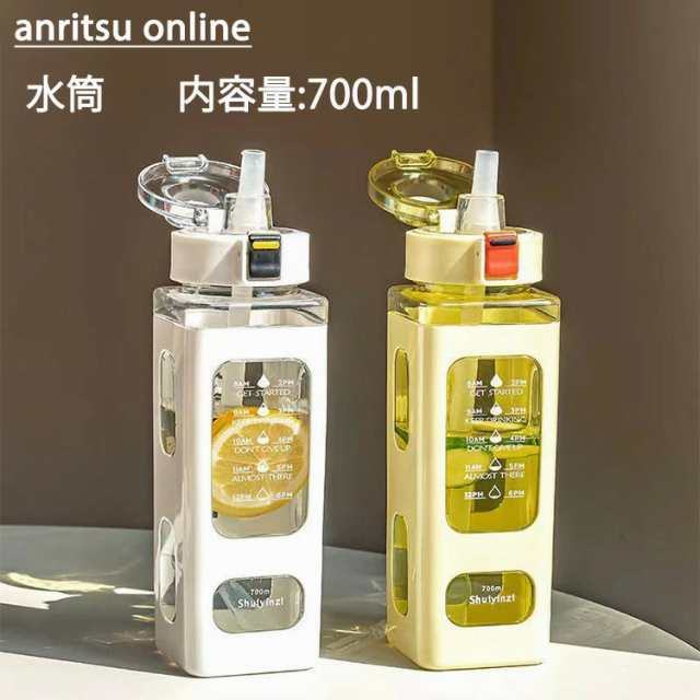 水筒 ストロー付き ドリンクボトル 700ml 目盛り付き 4色 携帯水筒 ストロー付き タイムマーカー ドリンクボトル アウトドア 登山
