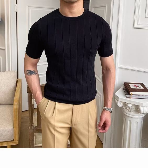 サマーニット トップス カットソー カジュアル 半袖Tシャツ メンズ サマーセーター ニットTシャツ