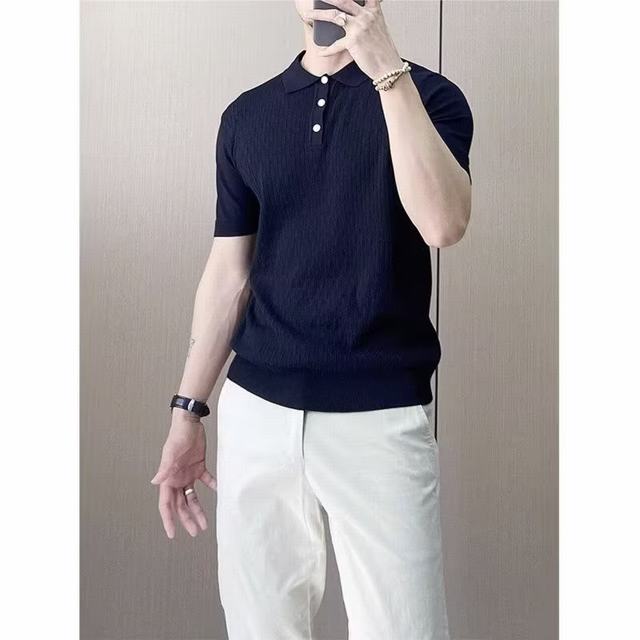 サマーニット トップス カットソー カジュアル 半袖Tシャツ メンズ サマーセーター ニットTシャツ