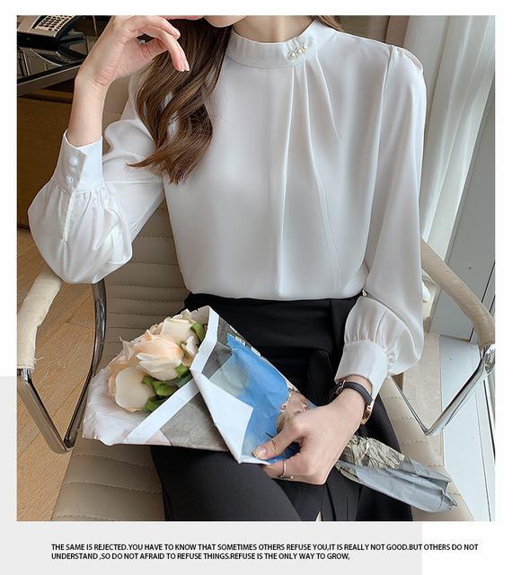 ブラウス レディース 長袖ブラウス 秋服 オフィスブラウス 白パール オシャレブラウス シフォントップス 韓国風