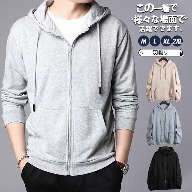 パーカー メンズ 秋 前開き 薄手 春 ジップアップパーカー フード付き カーディガン 長袖 羽織 カジュアル 体型カバー