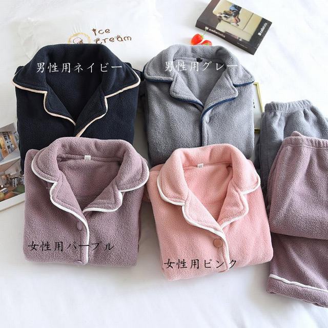 ペアルックカップル 厚手パジャマ レディース 長袖 秋 冬 ルームウェア 部屋着 無地 花 ふわふわもこもこ