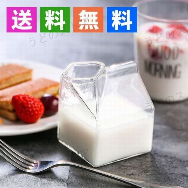 【1個】 牛乳パック型 ガラスピッチャー 花瓶 水差し 食器 カフェ グラス