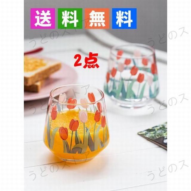 大人気牛乳カップ チューリップ柄グラス 2点セット インテリア 北欧風