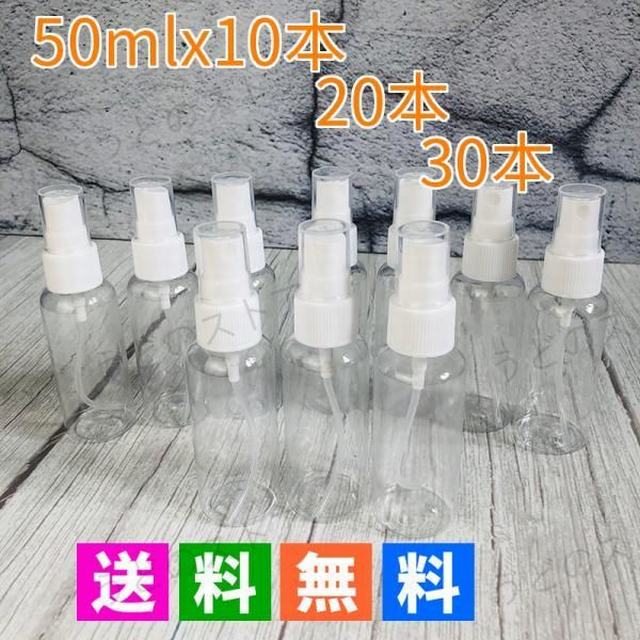 スプレーボトル 50ml ミストスプレー携帯用 空容器 透明 霧吹き ノズル 空 携帯 アルコール対応 キャップ付