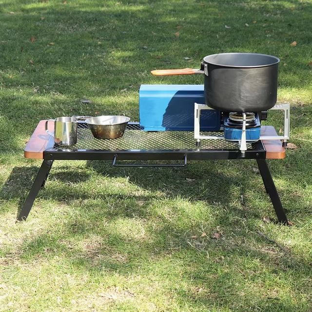 素材:鉄と木サイズ(展開時):掲載サイズ表をご参照ください。サイズ(収納時):約65.5 * 30 * 2.5cm 耐荷重(約):18kg【直火可&耐熱性】耐熱型テーブルです。焚き火台やガスバーナーの上に置けば、調理用の五徳としても使えます。鍋、フライパン、スキレットやケトルなどを天板に置いて調理台として使います。焚き火の側で調理したり、食材を乗せたりすることができます。両サイドは木材なので、移動しやすくて、やけどからよく守ります。【多機能&便利性】洗った食器をテーブルの上で乾かしておけば、いちいち拭かなくて良いので撤収の時短になります。アイアン製なので、熱したスキレットやダッチオーブンを気にせずそのままドカッと置けます。ウッドテーブルの場合は鍋敷きを敷いたり気を使う必要がありますが、アイアンメッシュテーブルがあるとキャンプが超快適になります。【折りたたみ式】両脚を開くだけで簡単設営できます。面倒な組み立ては必要ありません。5秒で使えるようになるので設営?撤収の時短になります。折り畳んだとき、僅か2.5cmの厚さで場所を選ばず車やお部屋の隙間にコンパクトに収納可能です。