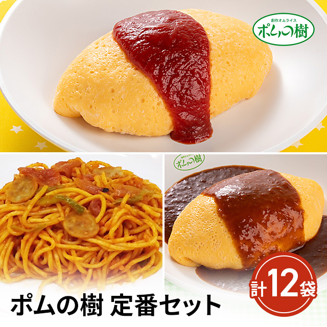 ポムの樹 定番セット ポムオムハヤシ 350g×4袋、ナポリタン 250g×4袋、ポムオム 280g×4袋 (計12袋) 冷凍 ポム オムライス 食べ比べ アソート お試し 詰め合わせ セット 冷凍食品