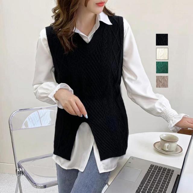 ニットベスト スリット入り ブラウス