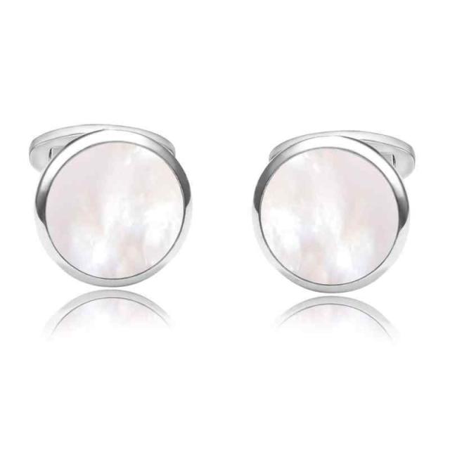 Yoursfs 結婚式 カフスボタン メンズ 丸 カフスボタン 白蝶貝 おしゃれ日常仕事シンプルで カフスボタン プレゼント(ゴールド シルバー) (シルバー-カフスボタン 白蝶貝)