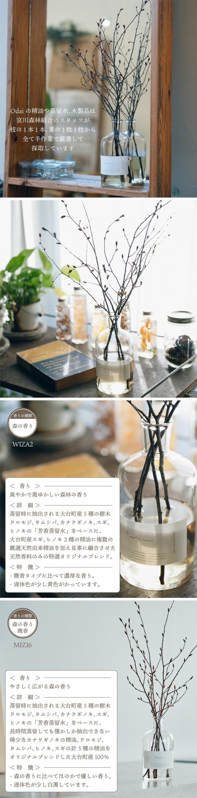 アロマ Odai イヌシデ リードディフューザー 天然素材 天然由来精油 天然由来芳香蒸留水 ヒノキスティック付き 芳香期間約1.5ヶ月 ローカルメイド ルームフレグランス 芳香剤 樹木 森林 フォレスト ヒーリング ディスプレイ オブジェ ギフト 贈り物 インテリア