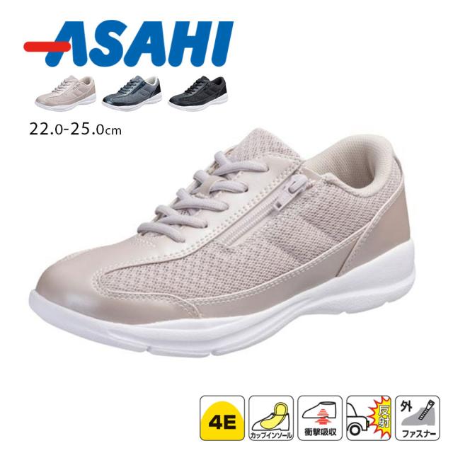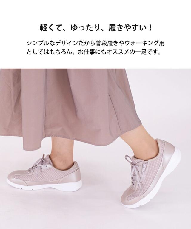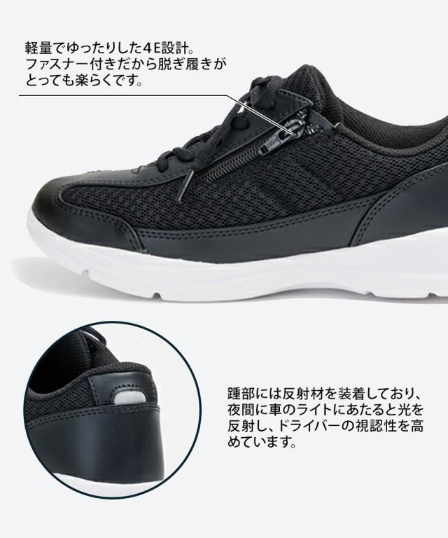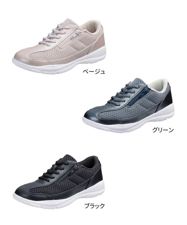 スニーカー レディース ローカット 軽量 軽い サイドファスナー 幅広 4E 履きやすい 通気性 ウォーキングシューズ コンフォートシューズ 女性用 リフレクター 反射材 無地 ベージュ グリーン ブラック 黒 L532