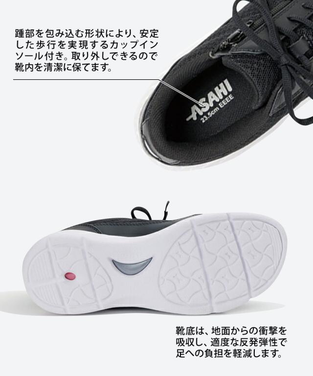 踵部を包み込む形状により、安定した歩行を実現するカップインソール付き。 取り外しできるので靴内を清潔に保てます。