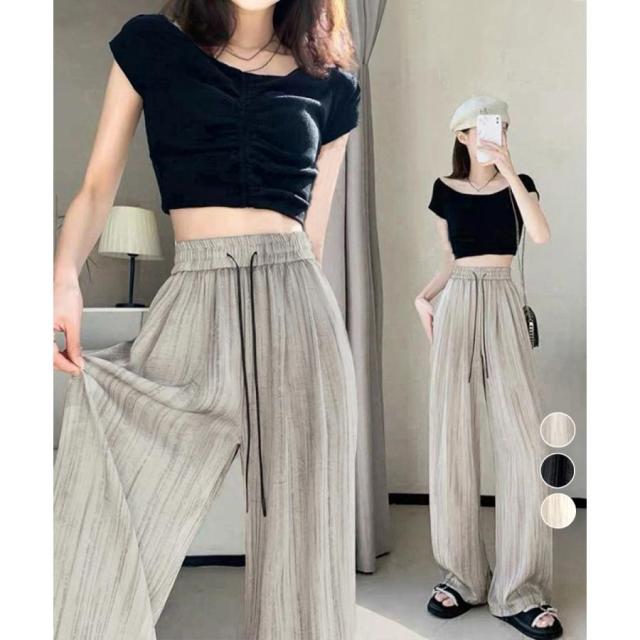 レディース ハイウエスト ストレートパンツ ゆったりロングパンツ 涼しいサマーパンツ ウエストゴム 楽ちんイージーパンツ