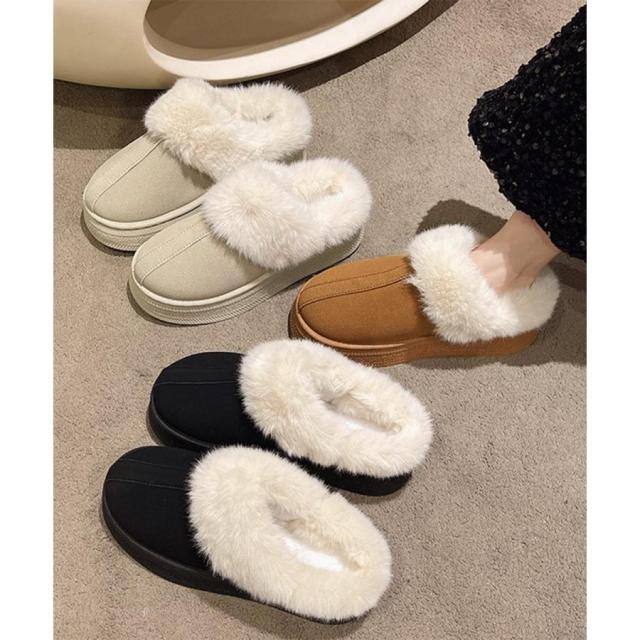 もこもこ ムートンスリッポン 裏起毛ローファー 暖かいふわふわスリッポン ファーパンプス 保温防寒靴 オシャレ裏ボア冬靴