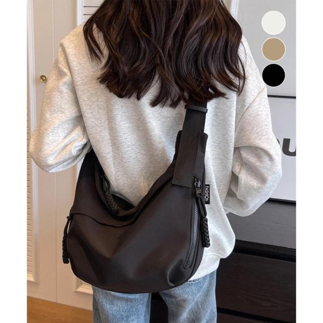シンプルなデザイン、ベーシックカラーのナイロンショルダーバッグ。