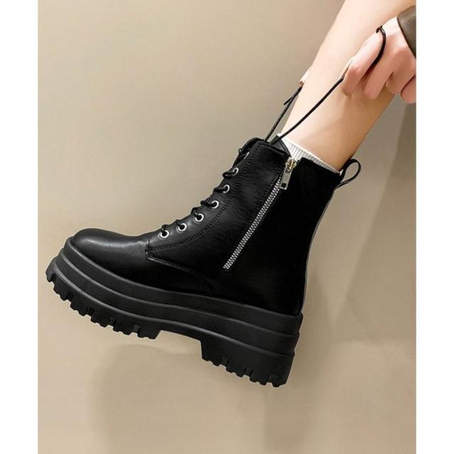 ショートブーツ厚底 ワークブーツ美脚脚長