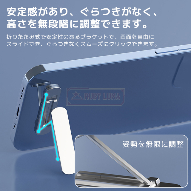 最安挑戦 冬新作 送料無料 新作 スマホスタンド 折りたたみ 携帯キックスタンド 粘着テープ 薄型 スリム 軽量 コンパクト 360度回転 角度調整可能 縦置き 横置き 貼り付け メタルカラー スマートフォン タブレット 汎用 全機種対応