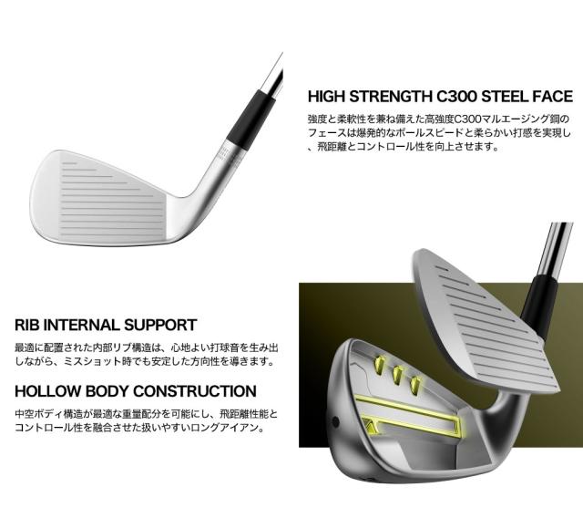 中空ボディ構造が最適な重量配分を可能にし、飛距離性能とコントロール性を融合させた扱いやすいロングアイアン。