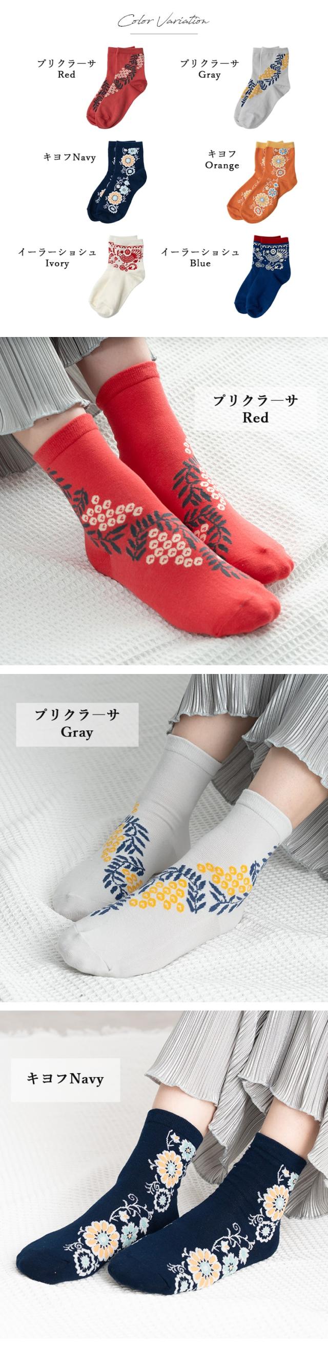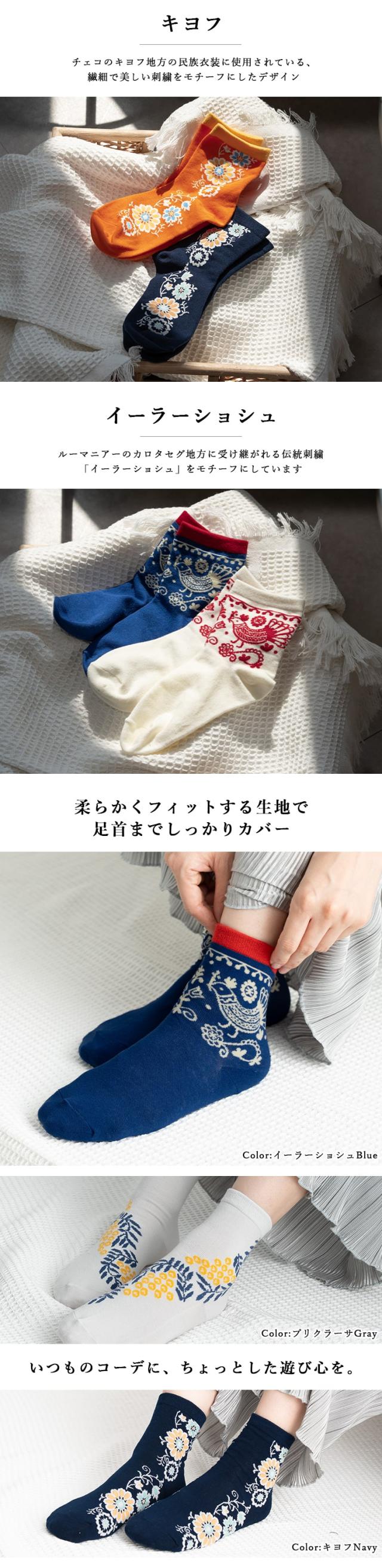 靴下 ソックス レディース ショート 東欧 民族柄 エスニック 花柄 おしゃれ かわいい 大人 くるぶし 綿 コットン 春 夏 秋 冬 23-25cm