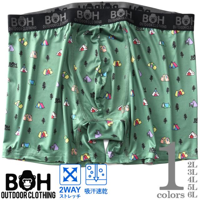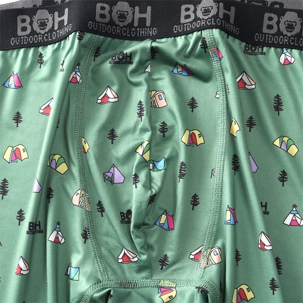 大きいサイズ メンズ BH ビィエイチ 吸汗速乾 ストレッチ キャンプサイト柄 ボクサー ブリーフ パンツ 肌着 下着 bhup-259005