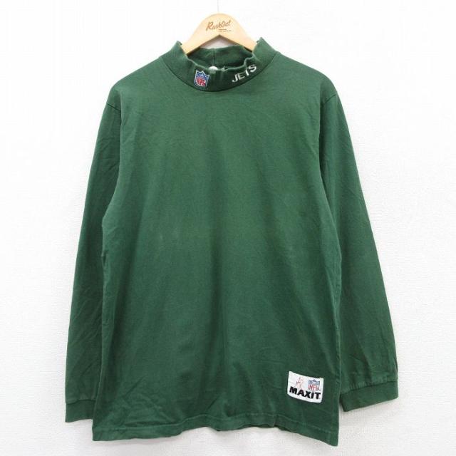 古着 長袖 ビンテージ Tシャツ メンズ 00年代 00s NFL ニューヨークジェッツ コットン モックネック ハイネック カナダ製 緑 中古 古着