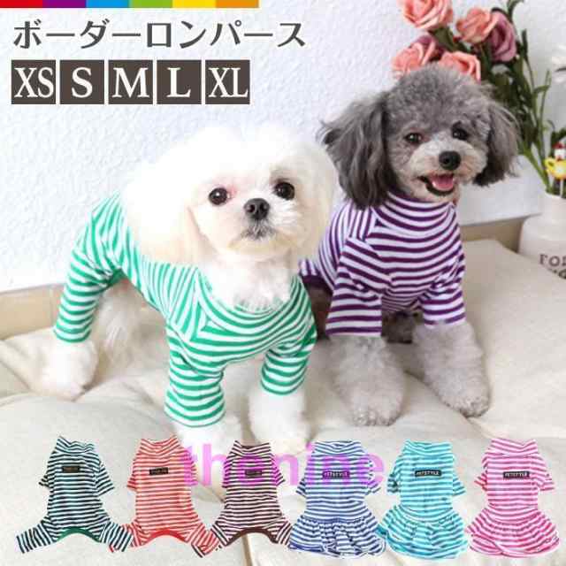 犬服 ロンパース ボーダーロンパース つなぎ カバーオール スカート ワンピース パジャマ ボーダー柄 ドッグウェア