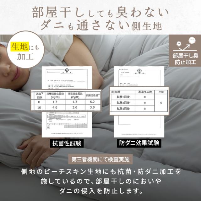 側地に部屋干し臭防止加工と中綿には抗菌防臭防ダニ加工を施しています。