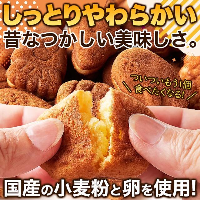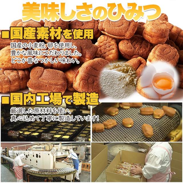 【美味しさのひみつ】国産の小麦粉、卵を使用。豊かな風味にこだわり、どこか昔なつかしい味わいに仕上げました!!厳選した原材料を使い、国内工場で製造しています。