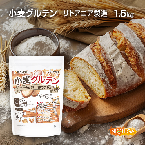 小麦グルテン(リトアニア製造) 1.5kg 【送料無料(沖縄を除く)】 活性小麦たん白 パン 麺づくりに 製菓 NICHIGA(ニチガ) TK0