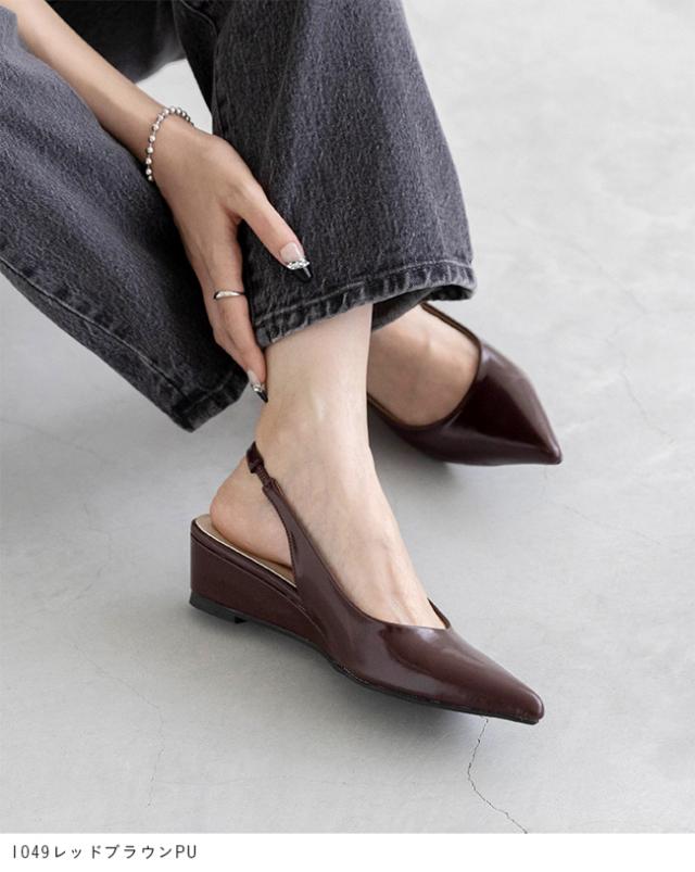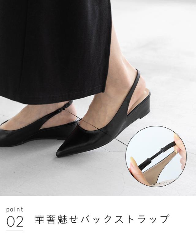 パンプス 走れる 履きやすい レディース ポインテッド ウェッジソール バックストラップ ミドルヒール 痛くない 大きいサイズ 小さいサイズ 送料無料