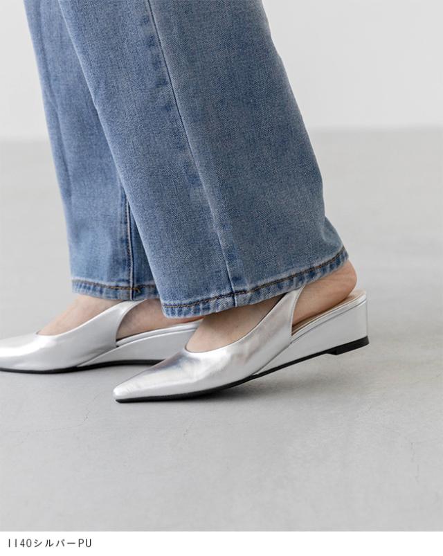 厚みを抑えたシャープなポインテッドトゥと、逆三角形にデザインして重たさを感じさせないウェッジソール。