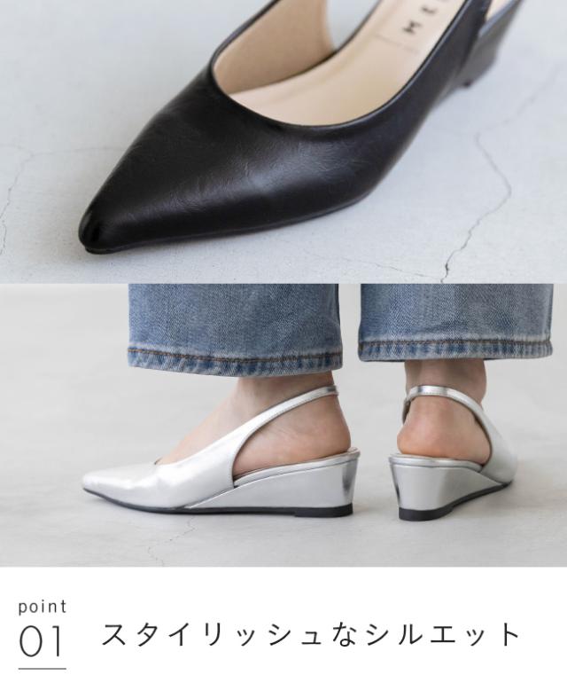 パンプス 走れる 履きやすい 走れるパンプス レディース ポインテッドトゥ ポインテッド とんがりトゥ ウェッジソール バックストラップ スリングバック ウェッジ ウェッジヒール 高反発クッション 高反発 クッション 屈曲性 すべりにくい 痛くない 歩きやすい 疲れない 疲れにくい 大きいサイズ 小さいサイズ デート おでかけ お出かけ カフェ ショッピング 買い物 屋外 外履き デイリー 日常 普段使い 日常使い 普通履き 4.5cmヒール 4.5センチヒール ミドルヒール 2E 黒 ブラック 赤 レッド 銀 シルバー 21.5cm 22cm 22.5cm 23cm 23.5cm 24cm 24.5cm 25cm 25.5cm 26cm 春 夏 秋 冬 スムース調 合皮 PU menue メヌエ outletshoes アウトレットシューズ welleg ウェレッグ