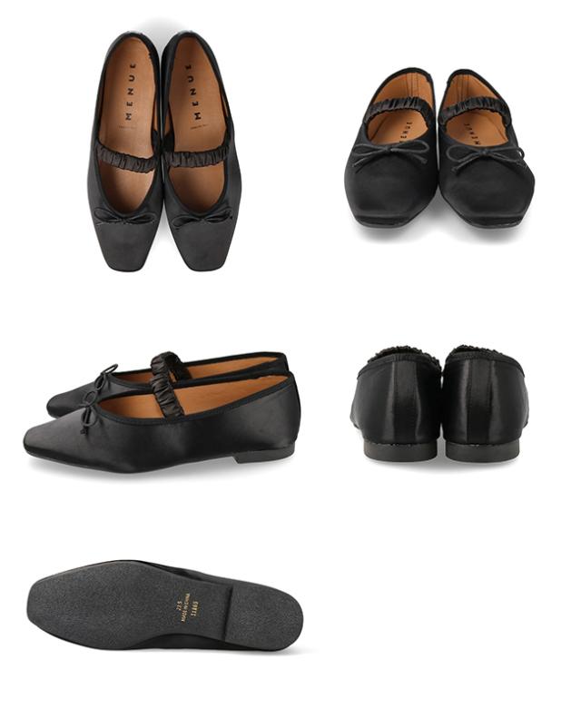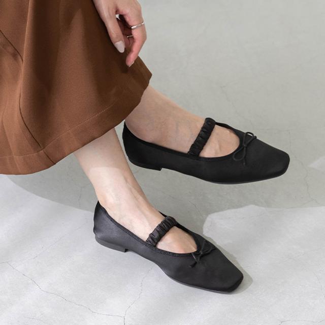 甘くなりすぎないスクエアトゥに、きゅっと結んだリボンが大人の可愛げをプラス。