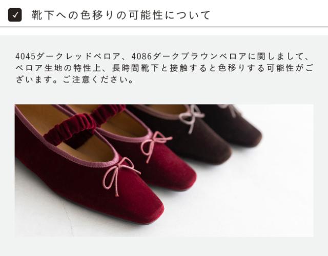 ・4045ダークレッドベロア、4086ダークブラウンベロアに関しまして、ベロア生地の特性上、長時間靴下と接触すると色移りする可能性がございます。ご注意ください。