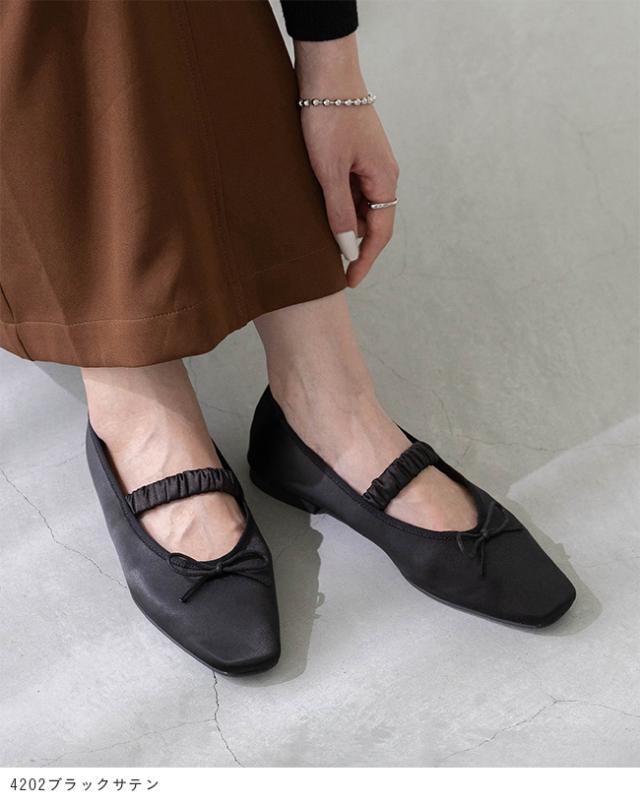バレエシューズ パンプス フラット ぺたんこ レディース スクエア ストラップ 痛くない 歩きやすい 送料無料