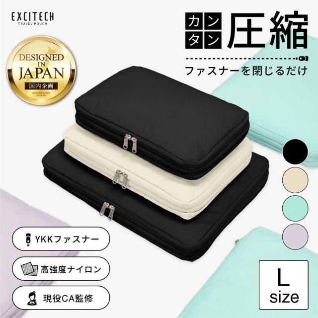 トラベルポーチ Lサイズ (現役客室乗務員監修/・まっぷる掲載) 日本企業企画 圧縮ポーチ YKK 旅行用圧縮袋 撥水 国内品質試験実施済 両面収納 洗濯機洗い可 送料無料 ギフト プレゼント EXCITECH