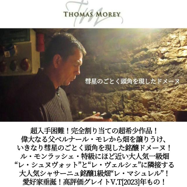 超入手困難!完全割り当ての超希少作品! 偉大なる父ベルナール・モレから畑を譲りうけ、いきなり彗星のごとく頭角を現した銘醸ドメーヌ!ル・モンラッシェ・特級にほど近い大人気一級畑“レ・シュヌヴォット”と“レ・ヴェルシェ”に隣接する大人気シャサーニュ銘醸1級畑“レ・マシュレル”!愛好家垂涎!高評価グレイトV.T[2023]年もの!