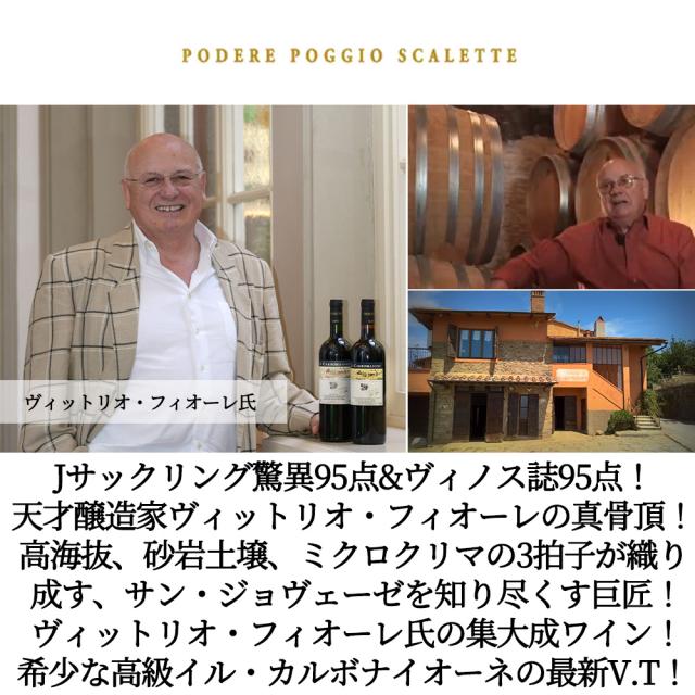 Jサックリング驚異95点&ヴィノス誌95点!天才醸造家ヴィットリオ・フィオーレの真骨頂!高海抜、砂岩土壌、ミクロクリマの3拍子が織り 成す、サン・ジョヴェーゼを知り尽くす巨匠! ヴィットリオ・フィオーレ氏の集大成ワイン!希少な高級イル・カルボナイオーネの最新V.T!