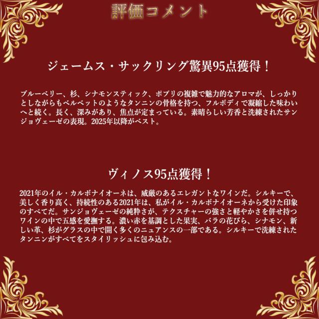 イル カルボナイオーネ 2021 ポッジョ スカレッティ元詰 ヴィットリオ フィオーレ ジェームス サックリング驚異95点&ヴィノス95点