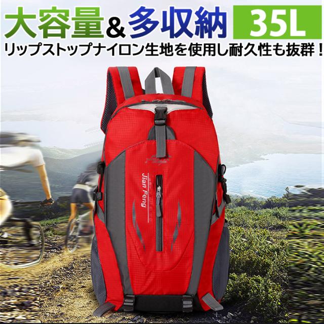 新作 多収納&大容量35L撥水リップストップナイロンバックパック メンズ レディース リュックサック バックパック 軽量 大きめ A4 収納 ポケット アウトドア 釣り 登山 防災 スポーツ 旅行 トラベル おしゃれ