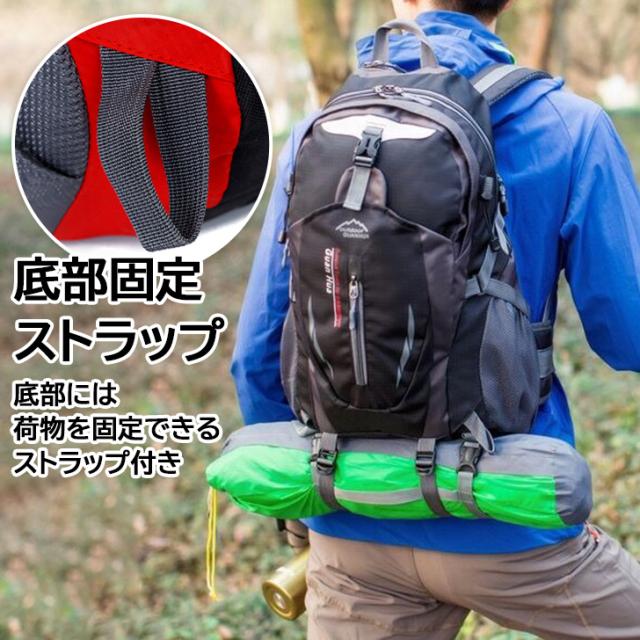 荷物を固定できる底部分のストラップや、