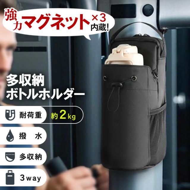 新作 3way強力マグネット付き撥水フェイクレザー多収納ボトルホルダー メンズ レディース ボトルホルダー 水筒カバー 水筒ホルダー ドリンクホルダー 強力 マグネット 磁石 磁気 撥水 スポーツ ジム フィットネス