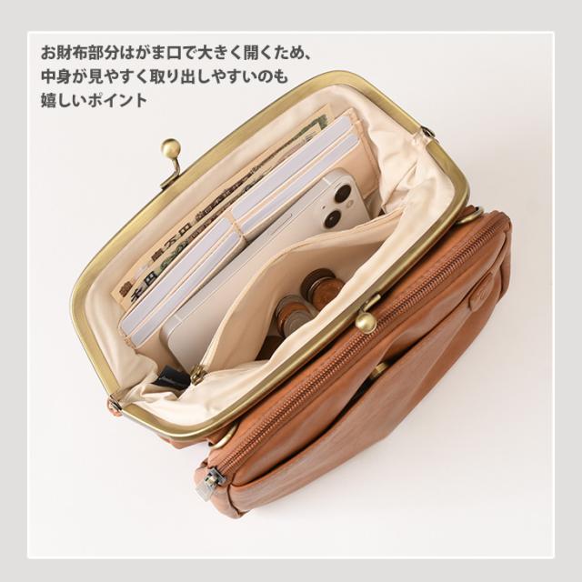 お財布部分もがま口で大きく開くため、中身が見やすく取り出しやすいのも嬉しいポイント