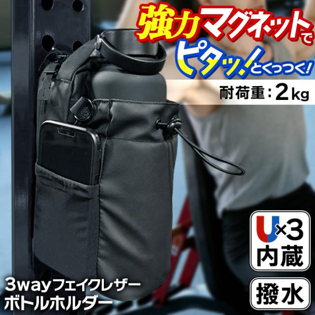 新作 3way強力マグネット付き撥水フェイクレザー多収納ボトルホルダー メンズ レディース ボトルホルダー 水筒カバー 水筒ホルダー ドリンクホルダー 強力 マグネット 磁石 磁気 撥水 スポーツ ジム フィットネス